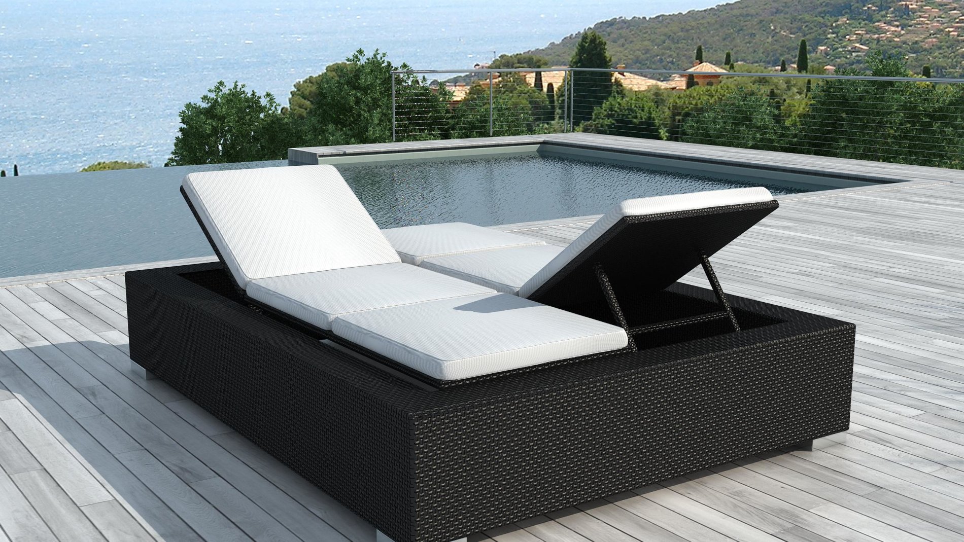 Bain de soleil en resine tressée Noire 2 personnes Darwin :