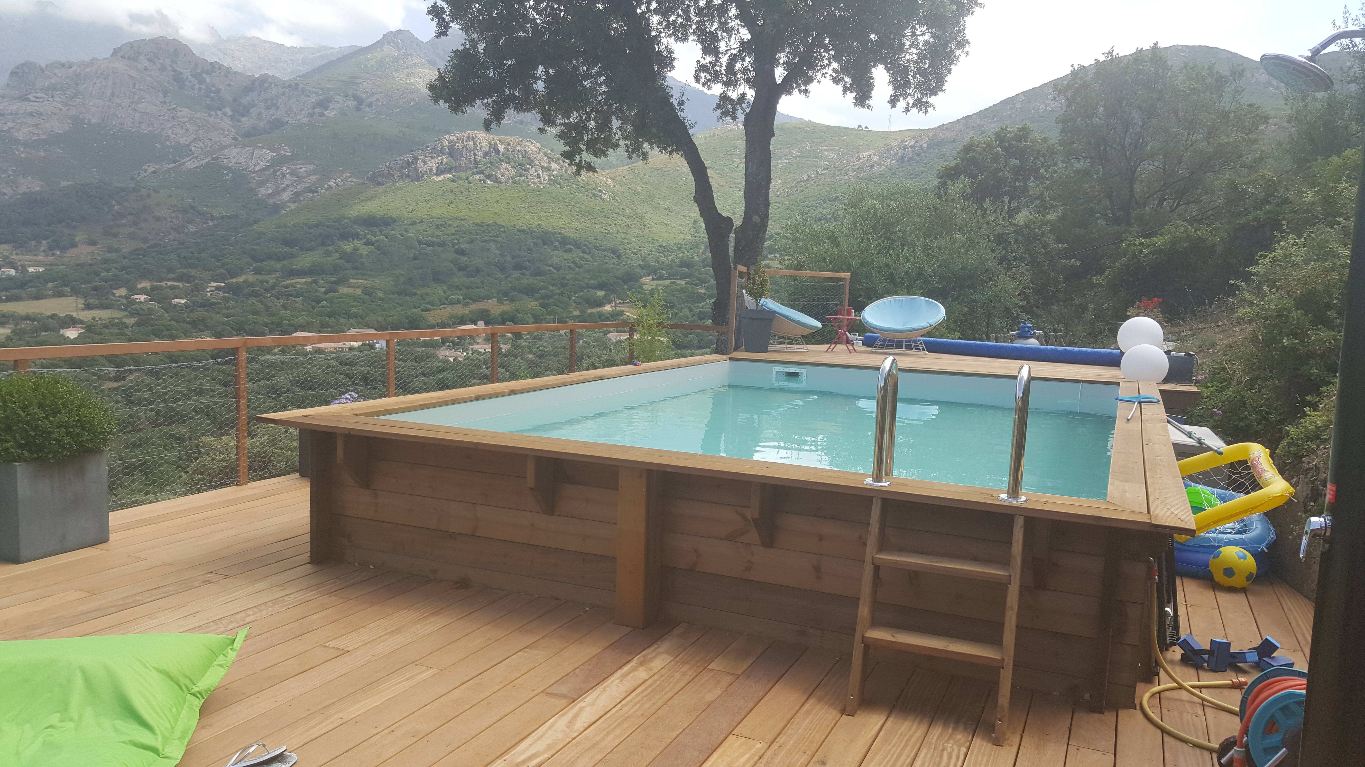 La structure des piscines est en Pin du Nord, provenant des régions froides de Scandinavie et de Russie ; les margelles en Sapin blanc du Nord.