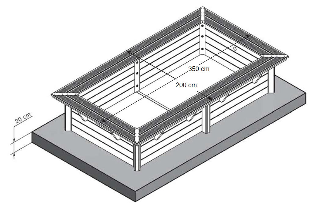 Installation obligatoire sur dalle béton de 10 cm à 20 cm d’épaisseur minimum |