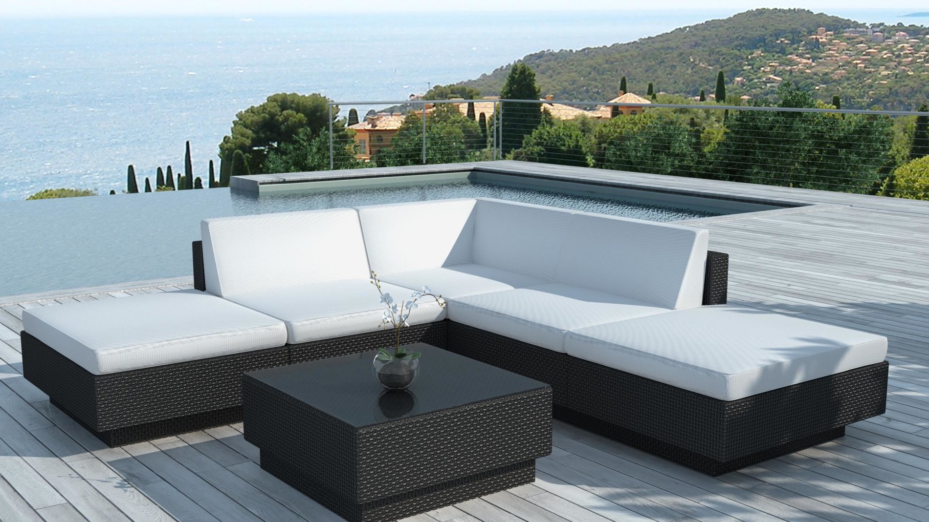 Salon de jardin d’angle en résine Noir Waimea :