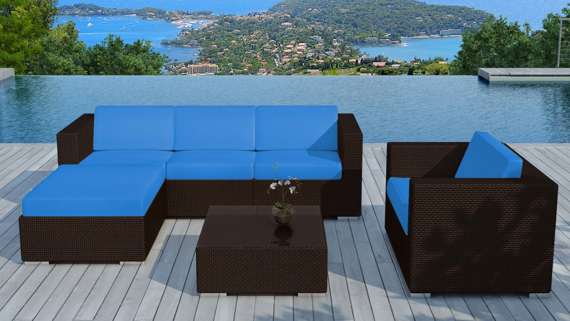 Salon de jardin en résine tressée Chocolat/Bleu Copacabana |