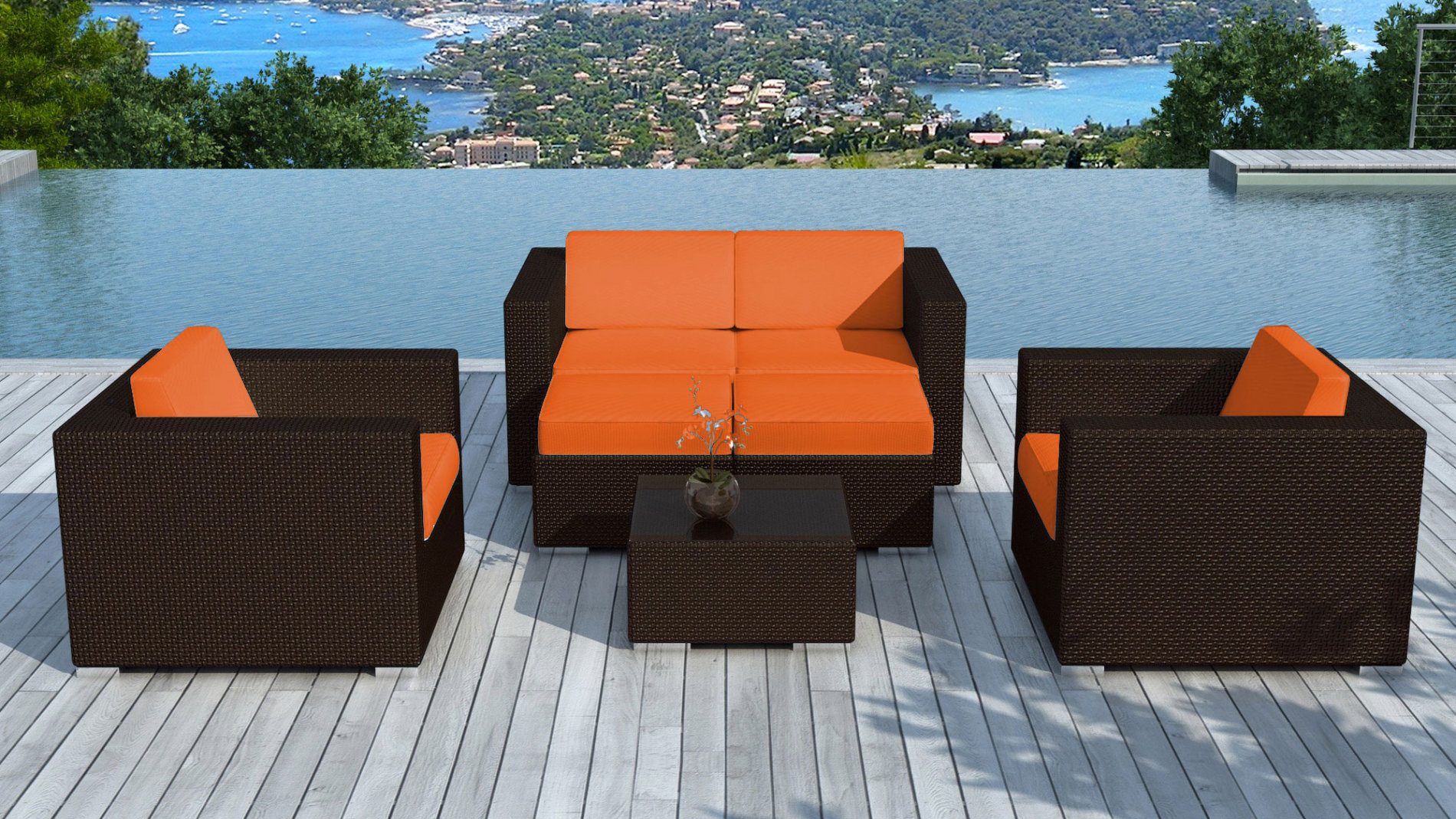 Salon de jardin en résine tressée Chocolat/Orange Pausa :