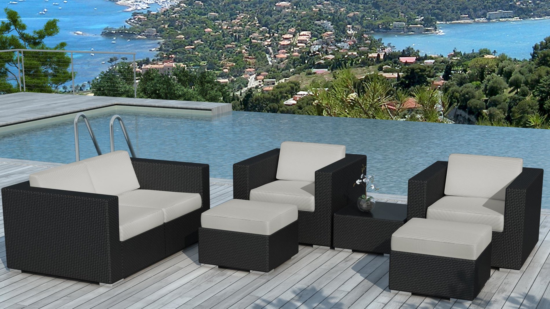 Salon de jardin en résine tressée Noir/Ecru Pausa |