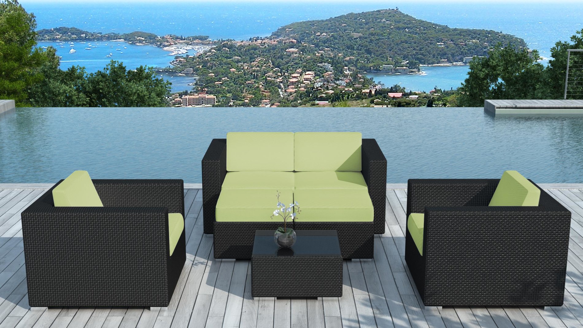 Salon de jardin en résine tressée Noir/Vert Pausa :