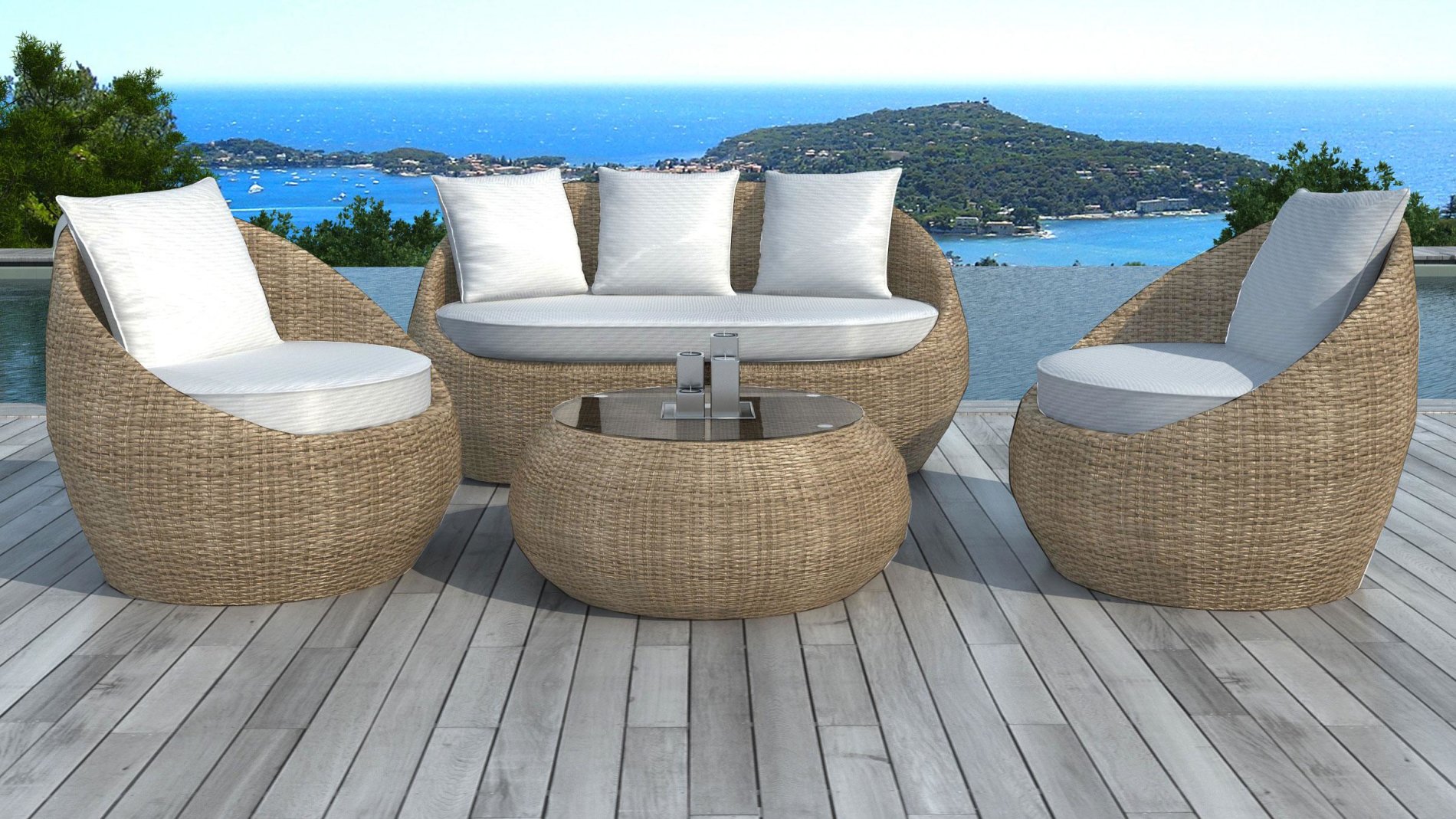 Salon de jardin en résine tressée ronde Rotin Malaga :
