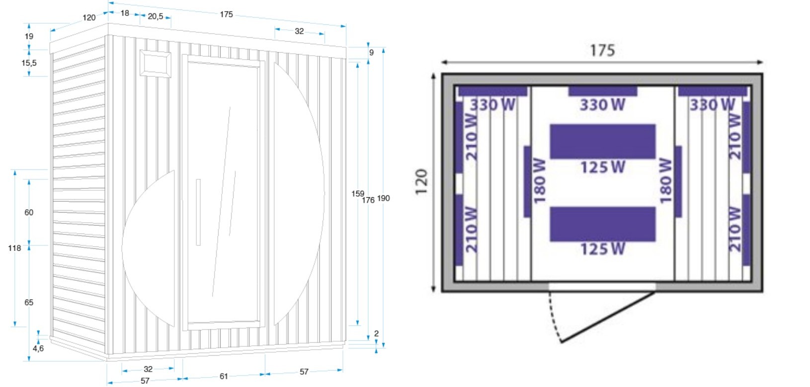 Largeur 175 x Profondeur 120 x Hauteur 190 cm |