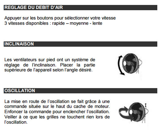 Ventilateur sur pied diamètre 40 cm P: 55W |