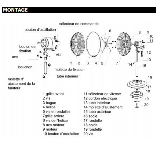 Ventilateur sur pied 55W avec télécommande